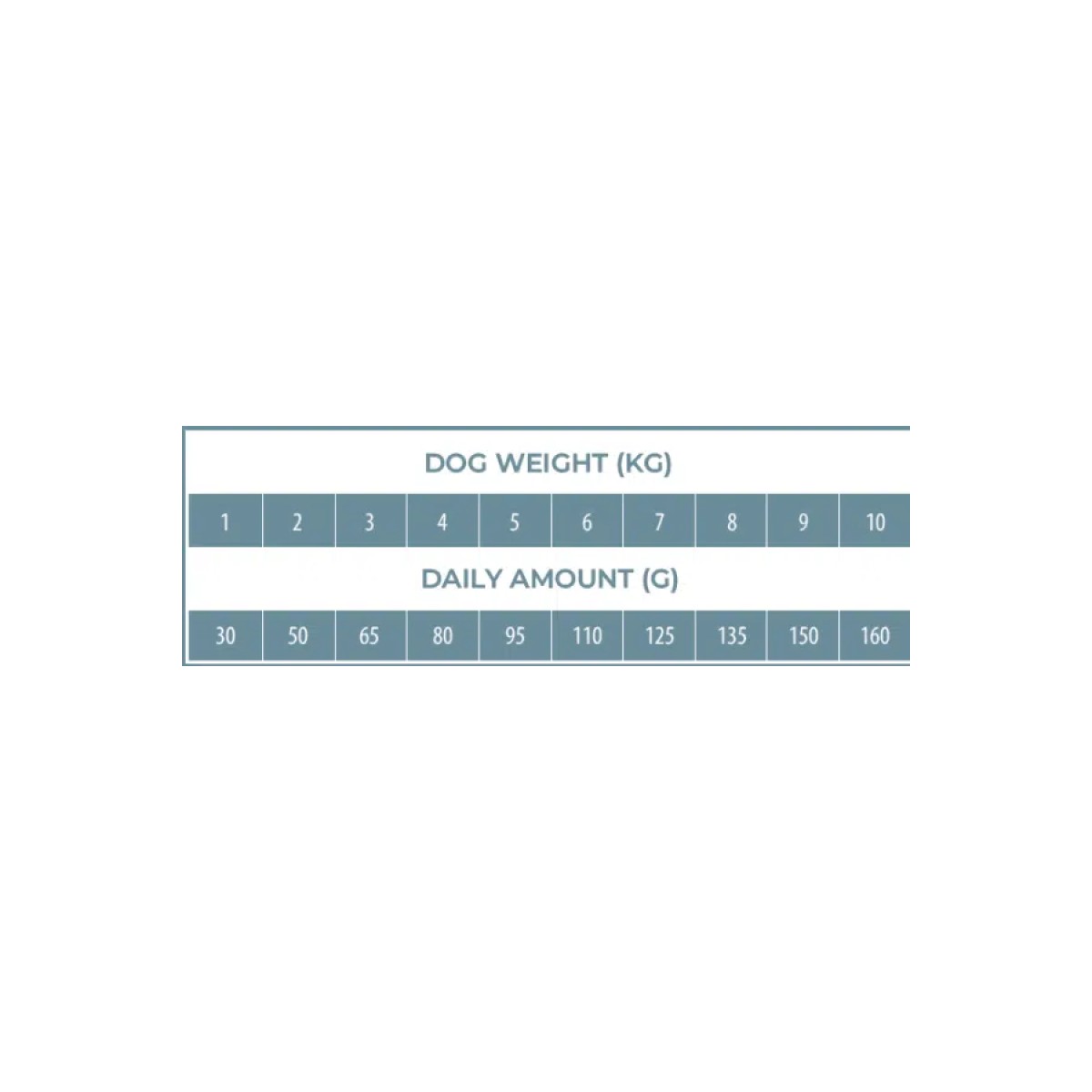 Lammprotein 43 % (torkat lamm 28 %, färskt lamm 15 %), ärtor, kycklingfett, bovete, torkad äppelmassa, kikärtor, hydrolyserad kycklinglever, laxolja, linfrö, bryggerijäst, alger (Ascophyllum nodosum), ärtmjöl, glukosamin, kondroitinsulfat, mannan-oligosackarider, frukto-oligosackarider, yucca schidigera, torkad mariatistel, inulin, torkad salvia, torkad rosmarin, torkad kamomill, torkad kryddnejlika, torkade citrusfrukter, torkad havtorn, torkad gurkmeja.