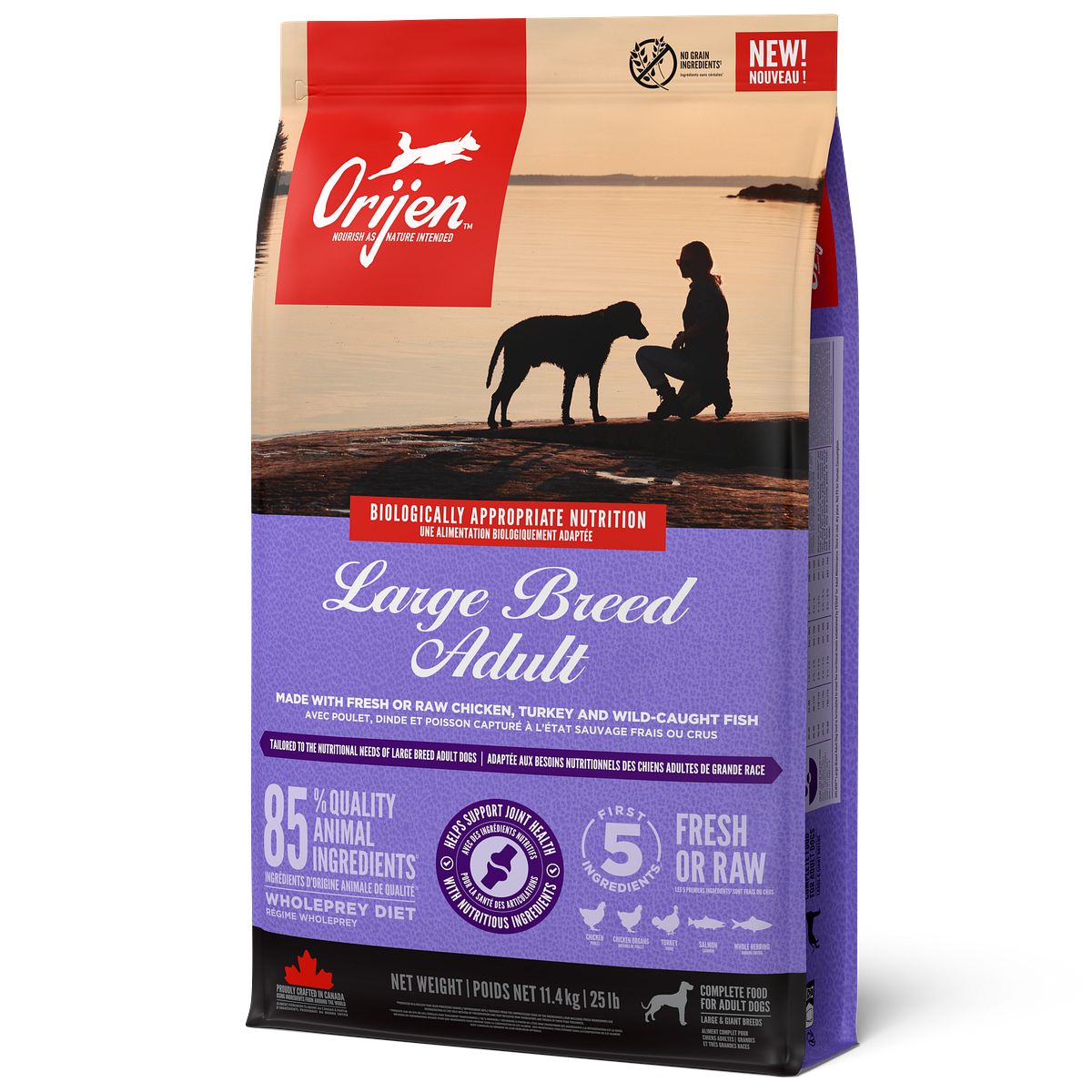 Orijen Dog Large Breed Adult - Made with Fresh or Raw Chicken, Turkey and Wild-Caught Fish.