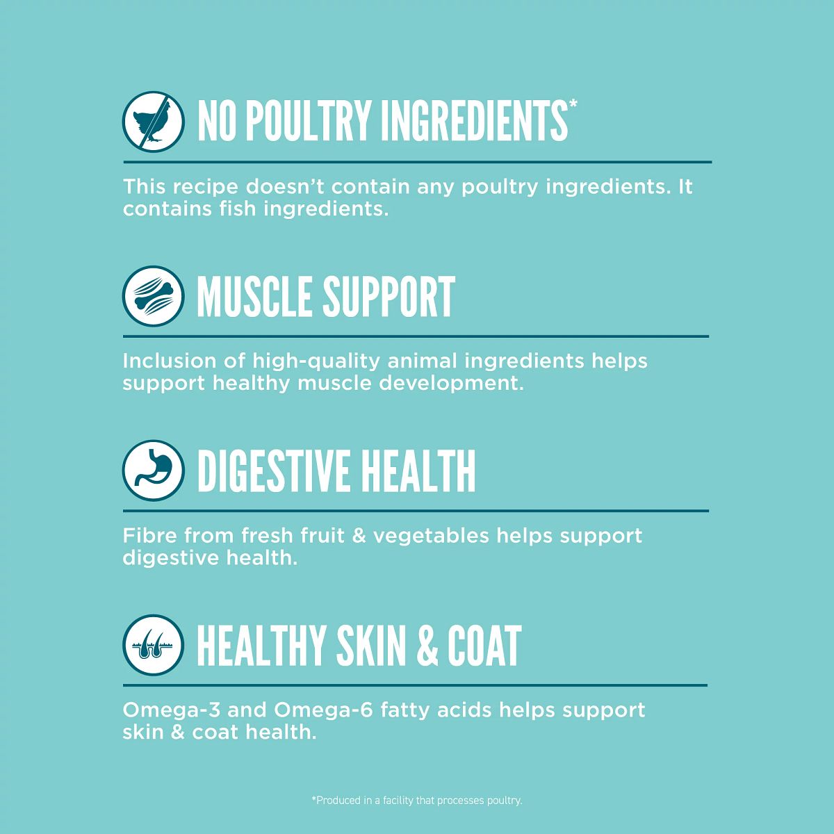 - WholePrey™-principen med fiskkött, organ och brosk i naturliga proportioner för en komplett och naturlig näringsprofil.