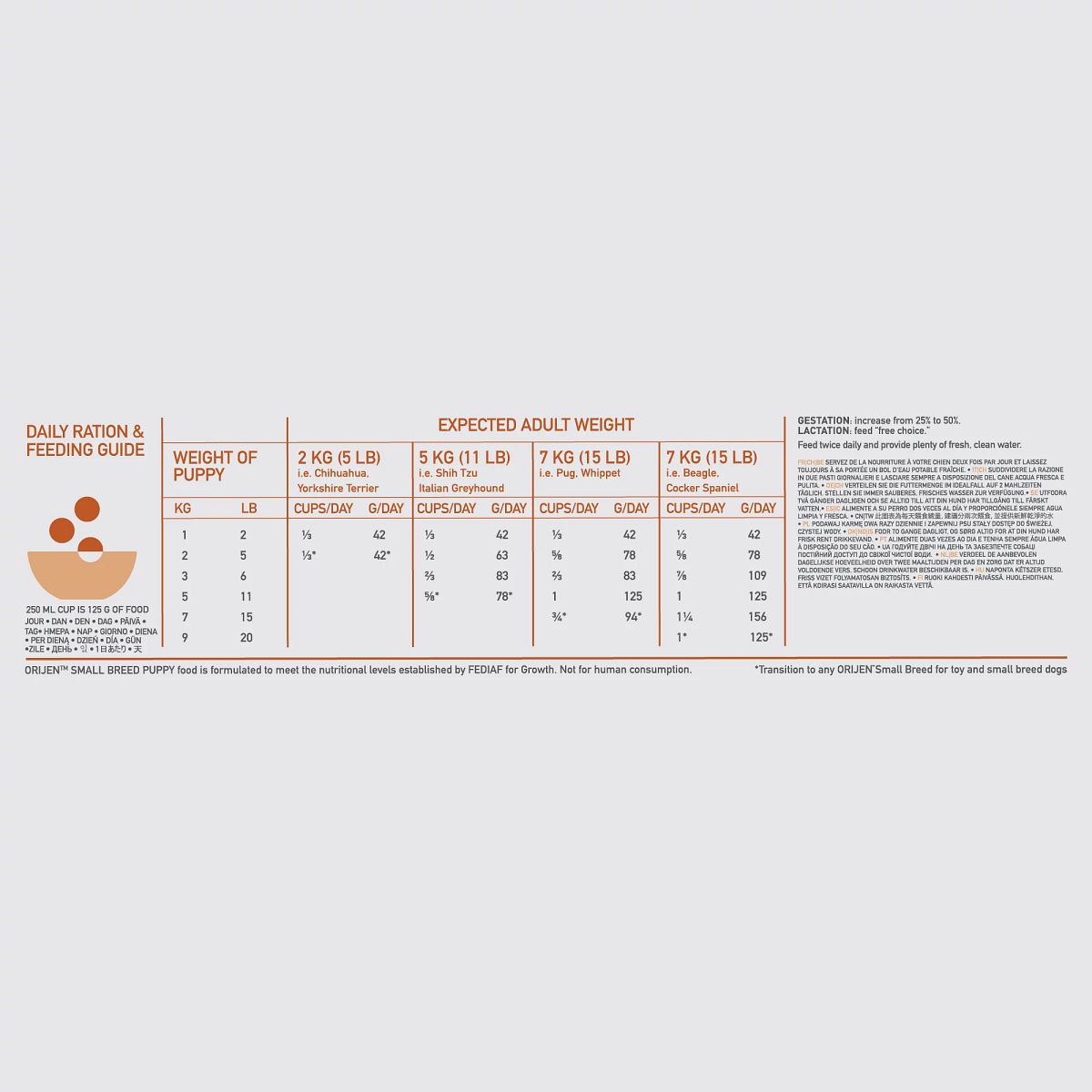 Orijen Small Breed Puppy är utvecklat för att ge små valpar rätt balans av energi, protein och näring för att växa starka och friska.