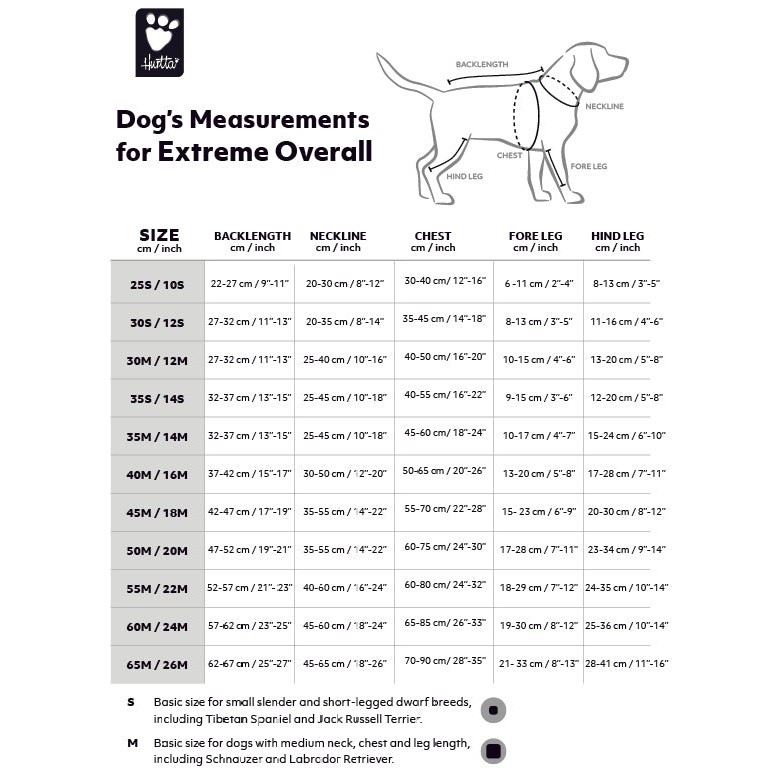 Overallen har en hög grad av justerbarhet för olika hundraser och kroppstyper. Den unika, justerbara bröstomkretsen maximerar användbarheten för alla hundtyper och garanterar rörelsefrihet. Rygglängden justeras genom en osynlig mekanism på overallens insida. 3M-reflexer på frambenen och stora reflextryck förbättrar säkerheten i mörkret.