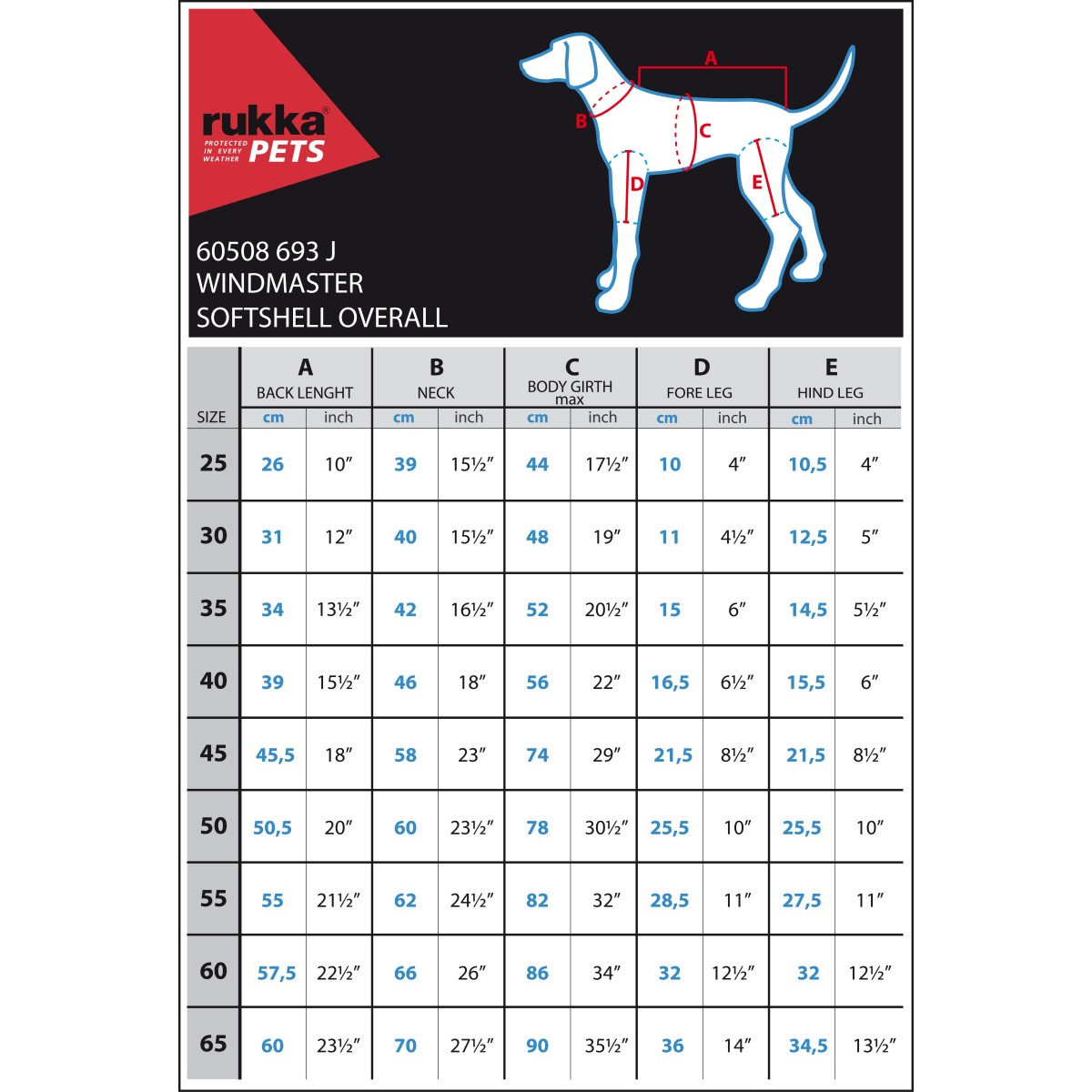 Windmaster overall finns i flera storlekar och passar både små och medelstora hundar. Justerbara detaljer gör det enkelt att anpassa plagget efter hundens kroppsform.