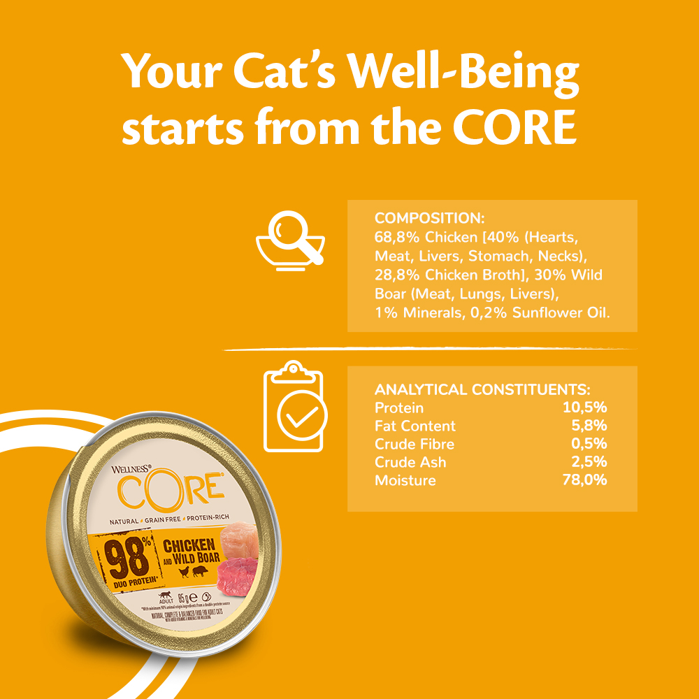 Wellness CORE Cat 98% Chicken with Wild Boar Recipe - 98% Kyckling och vildsvin.